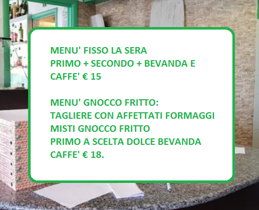 - Pane da un kg € 3,00- Primi € 5,00- Secondo con contorno € 8,00